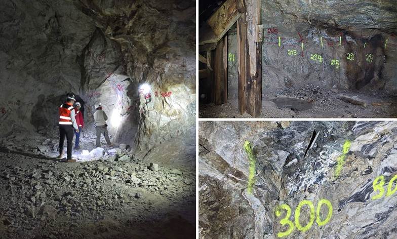 Photo 1: Underground sampling of the historic La Embotelladora Mineworkings.Figure 2: Plan view showing recent channel sample assay results and existing drilling results.