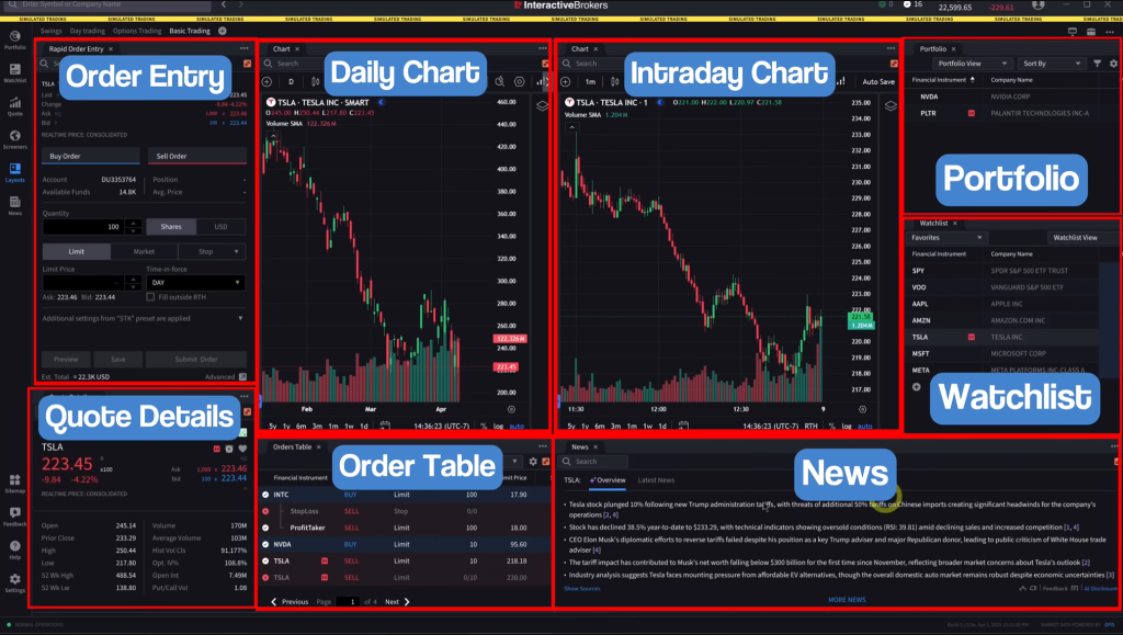 The Interactive Brokers platform gives you a ton of options to make your workspace your own. You can play around with layouts, tweak chart settings, add indicators, set up order panels, hotkeys, watchlists, and screening tools.