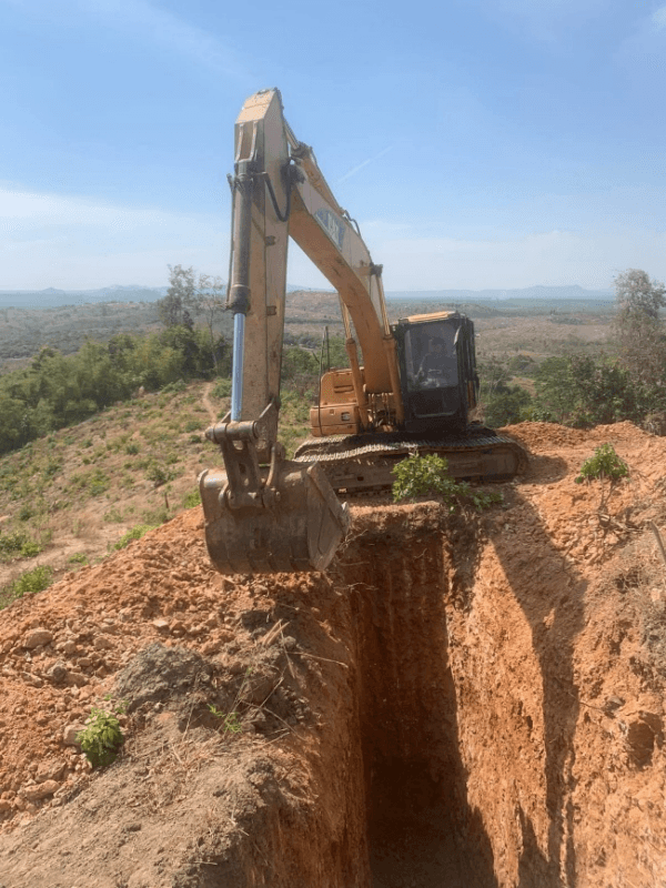 The excavation process involves digging each trench to the target depth, at which point Angkor’s field team entered the trench to collect samples directly from the exposed geology, including veining and stockwork visible in the trench walls. Once sampling was complete, the team exited the trench and all samples are marked, bagged, and prepared for testing and analysis on the surface. As soon as sampling was finished at each location, the trenches were filled in and the site was restored.